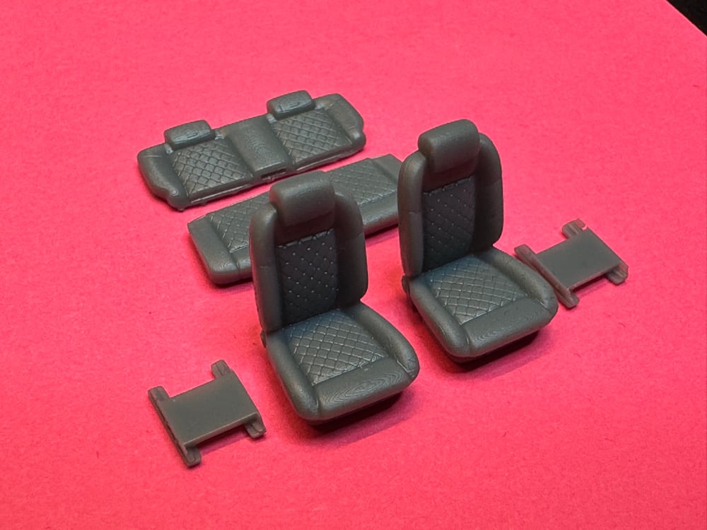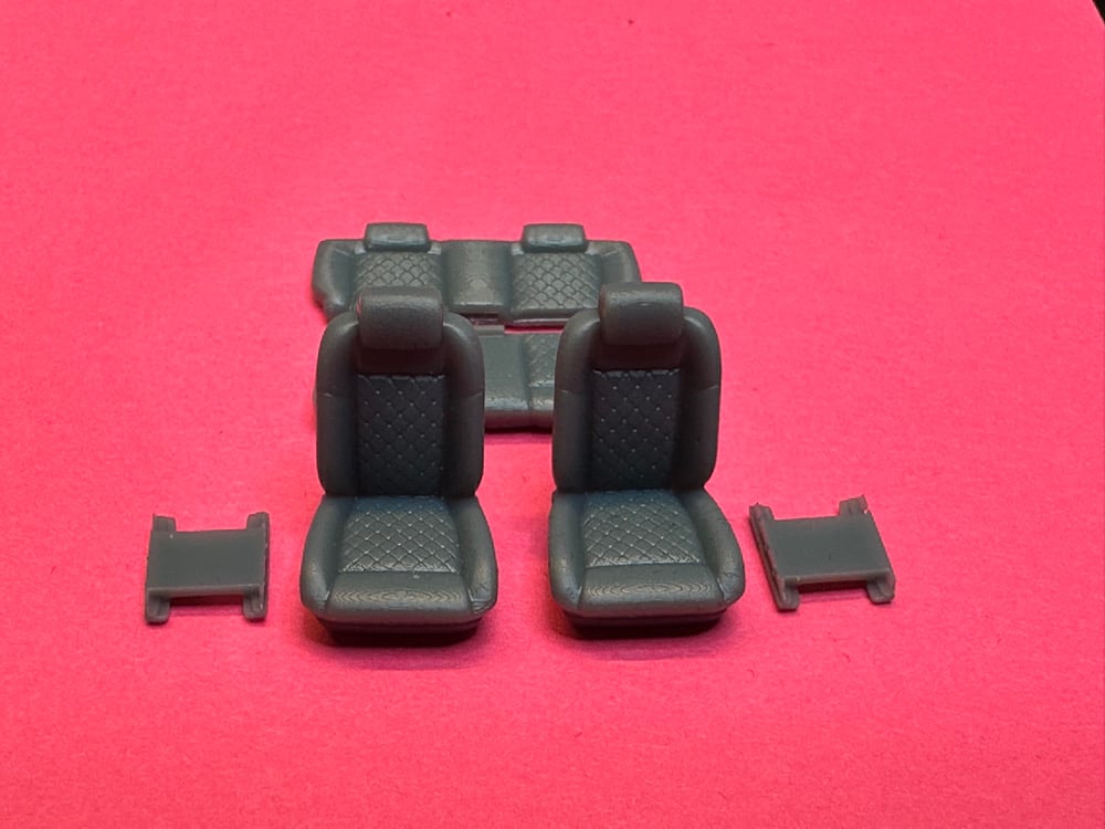 1/64 scale bucket seats w bases and rear bench. Interior bucket to show example. Seats and bases only