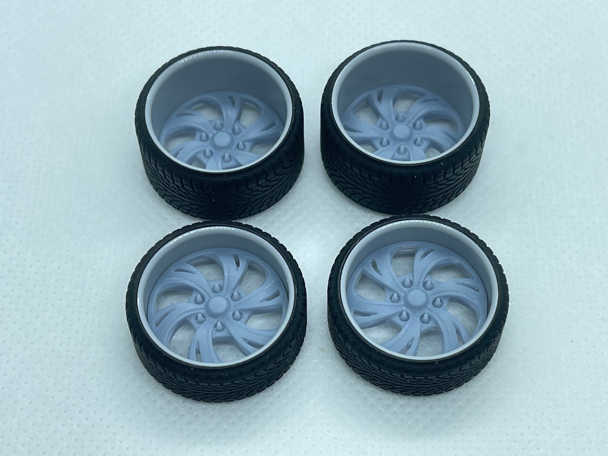 22" set in 1/24-25 scale Rubber tires Resin cast rings 3d print center Mounts incl Fully finishable